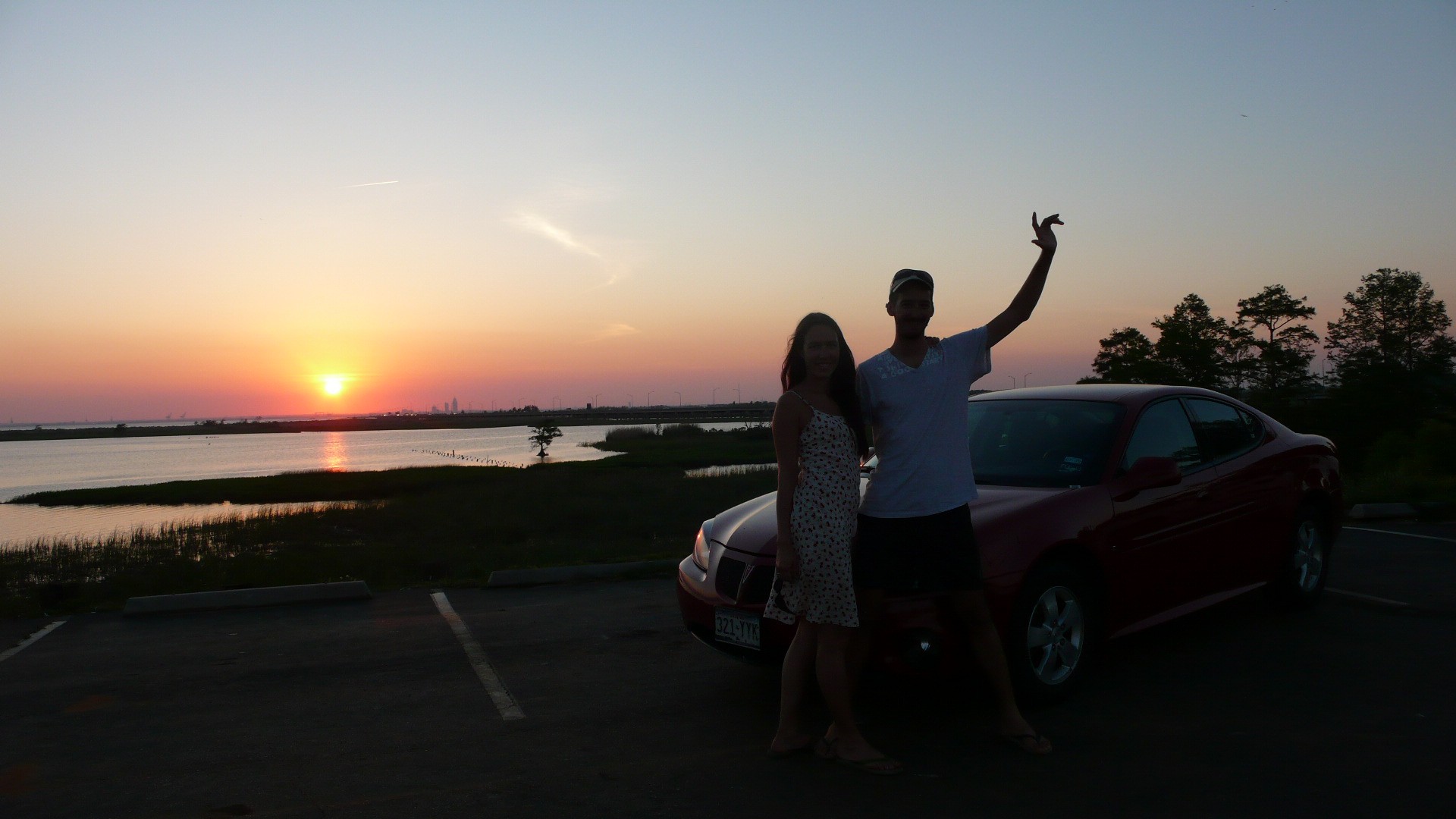 Notre magnifique Pontiac Grand Prix rouge dans le soleil couchant de Mobile...