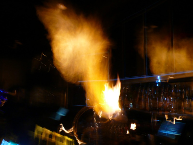 Un cracheur de feu dans un bar, qui s'est d'ailleurs un peu loupe. Heureusement, bien qu'en novembre, il ne portait pas de moustache.