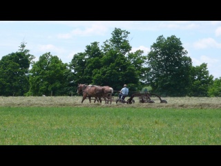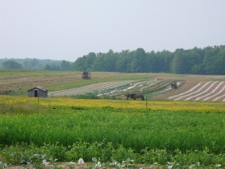 Grande spécialité des Amish : l'agriculture. A cheval bien sur. Dans les champs, ça laboure et ça fauche. Les champs sont moins grands et les sillons sont moins droits que ceux auxquels nous sommes habitués mais il n'y a rien a redire : hommes et chevaux ne chôment pas. Pour tondre la pelouse, même combat : ils poussent des tondeuses mécaniques dont les roues entraînent une sorte de cylindre qui tond la pelouse. Ça à l'air crevant. Il existe le modèle du dessus ou la tondeuse est tractée par un cheval.