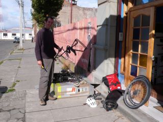 Installés dans une petite auberge (Il Conventillo), nous avons préparé notre périple chilien. Francis a remonté les vélos dehors, c'est a dire dans un vent et un froid glacial : bienvenue en Patagonie.