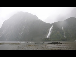 A Milford Sound, il fait un temps affreux, au point qu'on n'apercoit même pas les montagnes qui nous entourent. C'est malheureusement ça qu'il y a à voir. Nous déjeunons sur le seul mètre carré public sec de la zone : une station service désaffectée où les bataillons de sandflies ne tardent pas à nous repérer. Heureusement, les nuages se lèvent (un peu) et nous apercevons enfin Milford Sound, ses cascades, ses pics... Bon, on n'est pas venu pour rien. Nous cherchons donc à rentrer à Te Anau, mais nous avons mal calculé notre coup : il n'y a plus grand monde et les gens qui restent comptent tous passer la nuit ici. Au moment ou notre moral tombait au dessous du niveau de la flotte dans nos chaussures (1 cm ?), un couple d'Anglais se dirige vers leur voiture. Nous ne leur laissons aucune chance en attrapant l'oiseau au moment où il est le plus vulnérable : lorsqu'il ouvre ses ailes.