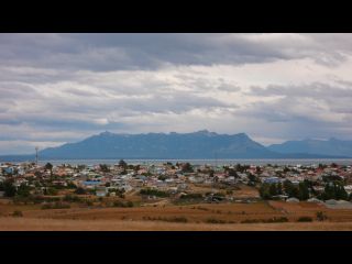 Aujourd'hui, miracle : pas de vent ! Francis rentre juste d'un petit aller-retour pour récupérer le dérive chaîne qu'il avait laissé sur le bord de la route après avoir re-reglé ses freins, et nous repartons. Nous arrivons à Puerto Natales sous le soleil après une belle descente : ça fait du bien d'avoir une belle journée facile !