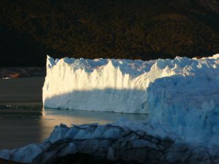 Mais le matin, c'est magique. Nous entendons depuis notre tente tous les craquements et les chutes de glace, et la vue du glacier a l'aube est impressionnante. De part sa taille, sa beauté, et la lumière qui change a chaque minute et donne au glacier mille couleurs. Nous avons du mal a quitter ce spectacle, et rentrons a contrecoeur sur Calafate.