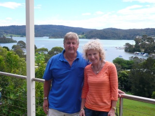 Tout d'abord John et Virginia à Narooma. Nous avions parle avec John quelques minutes devant le supermarché à propos des vélos. Puis étions partis en quête d'un camping. Mais tout était plein ou trop cher donc nous allions repartir en quête d'un "sneaky" camping quand une voiture s'arrête à côté de nous et John en descend. Il nous avait pisté a travers la ville pour nous inviter a dormir chez lui. C'est la première fois que quelqu'un nous invite spontanément s dormir. Nous trouvons cela tellement gentil que nous sommes d'abord méfiants. Nous apprenons que John, promoteur immobilier, a eu un grave accident de voiture, et qu'il a mis longtemps à pouvoir remarcher. Mais maintenant, comme la marche lui fait mal, il fait beaucoup de vélo.