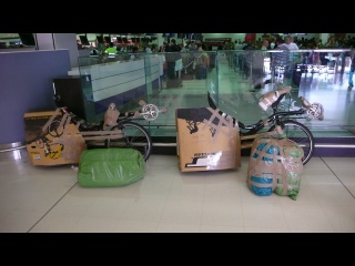 Un petit somme sur les banquettes de l'aéroport, et le réveil est dur : les femmes de ménage arrivent à 4h. Nous remettons donc nos velos en état de rouler, et nous voilà repartis, sous la pluie.