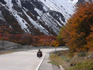 De Cochrane, nous réenfourchons nos vélos pour continuer la Carretera. Le ciel est bien bleu et nous découvrons que les montagnes tout autour de nous sont maintenant enneigées ! Cela nous motive d'autant plus pour rejoindre le Nord rapidement : il manquerait plus qu'on doive chaîner !
