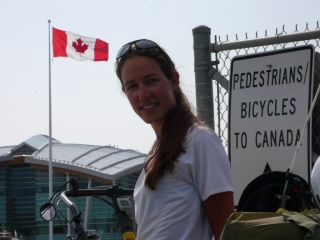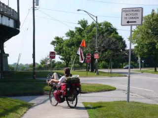 Ensuite il y avait un panneau "Pietons et cyclistes voulant entrer au Canada, par la". Donc Francis a décidé d'esquiver complètement le bureau du douanier, qui est sorti en nous courant après. " Et vous venez d'où comme ça ? Vous avez des papiers ? " On ne passe quand même pas tout à fait inaperçus avec nos bécanes.